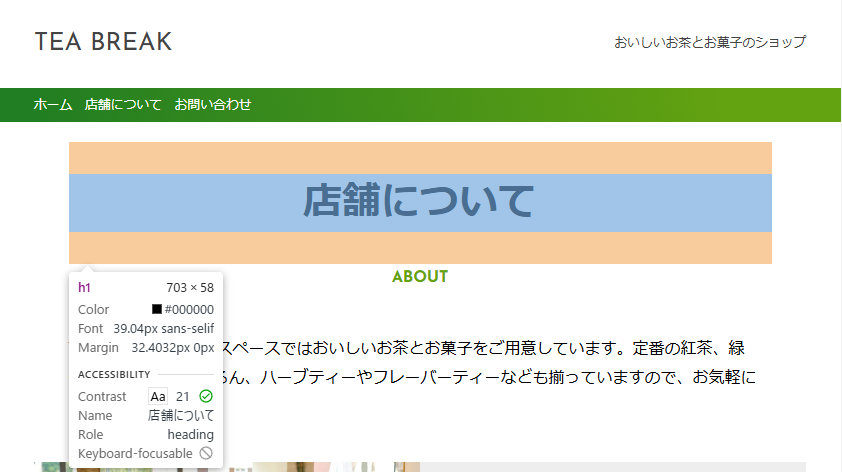 ブラウザで勝手にh1タグをブロック要素に指定してくれていたから、h1タグはブロック要素なんですね。