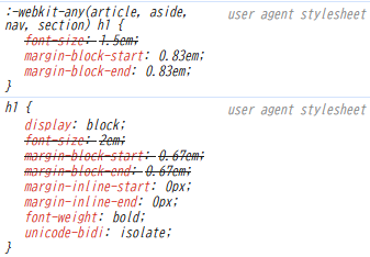 なのでブラウザはこれらを読みやすくするために、デフォルトで異なるマージンやフォントサイズを適用しているんだとか。