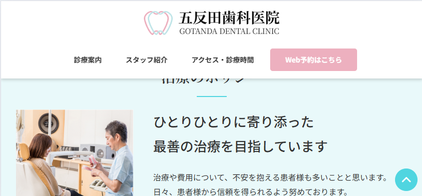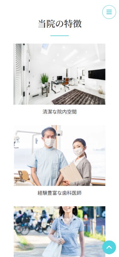 今は「虫歯治療」と「歯周病治療」の2つしかないですが、今後診療内容が増えてこのページが長くなったとき、上のボタンに戻ろうと思うと一生懸命上スクロールをしないといけません。