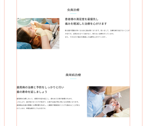 歯周病治療は左右が違うけど、flex-boxの配置順を変えればいいだけだから使いまわせるでしょ!と思い、せっせとclass名を汎用的なものに書き換えました。