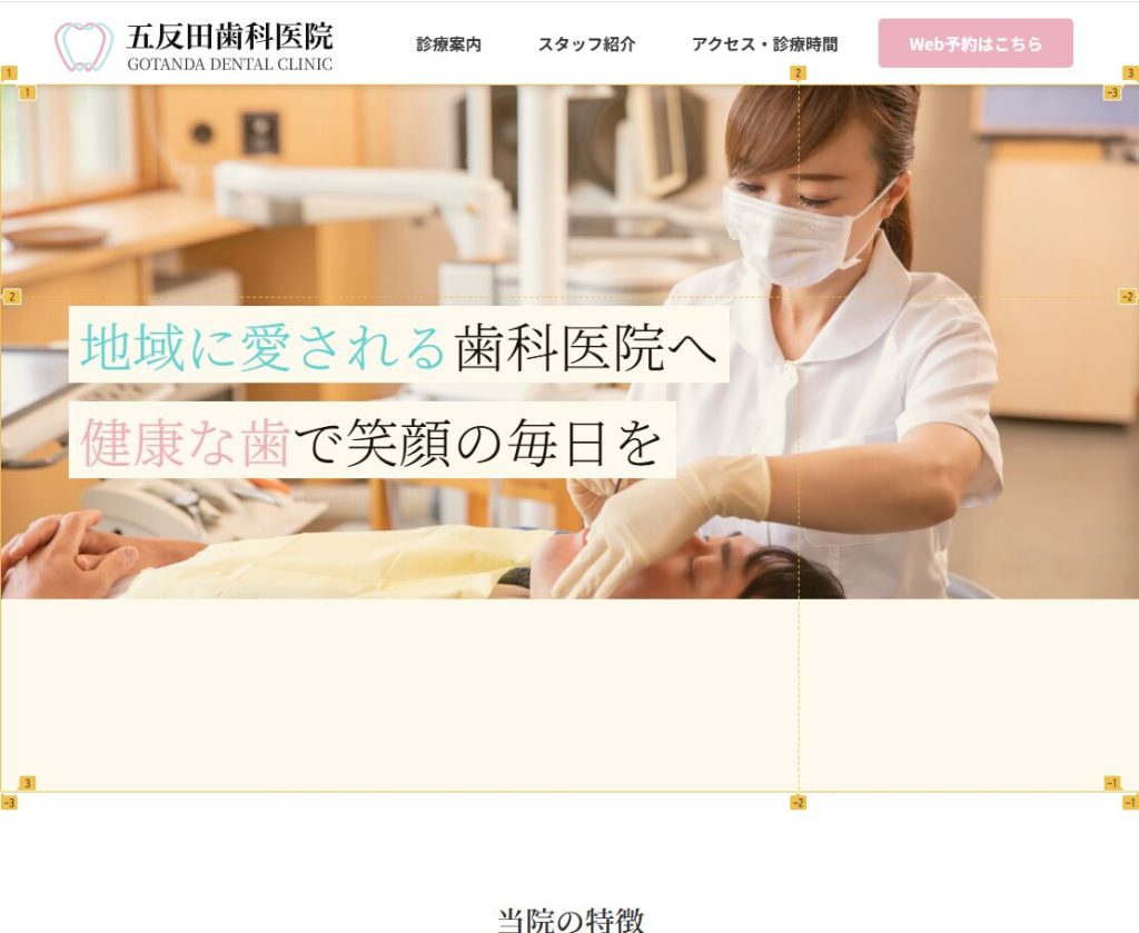 そのせいでテキストの位置は理想より下になり、次のコンテンツ(当院の特徴)までの余白も大きくなってしまった。
